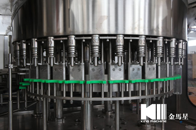 飲用水灌裝機集沖洗、灌裝、旋蓋于一體,全過程自動化運行,主要適用礦泉水、純凈水等不含氣飲料的沖瓶、灌裝、封口連續作業。本機大部分電器系統零件均采用國外優良產品,所有與液料接觸的地方均采用優質的不銹鋼材料制作,主關鍵部件采用數控機床精密加工, 整機光電檢測各部件的運行狀況,無瓶不灌裝,無瓶不送蓋,自動化程度高,操作簡易,具有耐磨、穩定、故障率低等特點,產品質量處于行業前列,是新老飲料投資者的選擇。