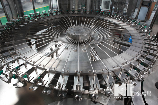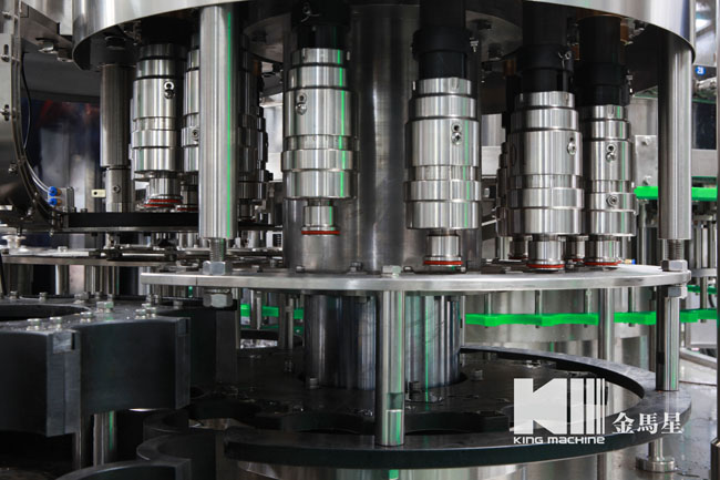 此設(shè)備主要應用于灌裝飲料,包含沖瓶、灌裝和旋蓋三大功能。