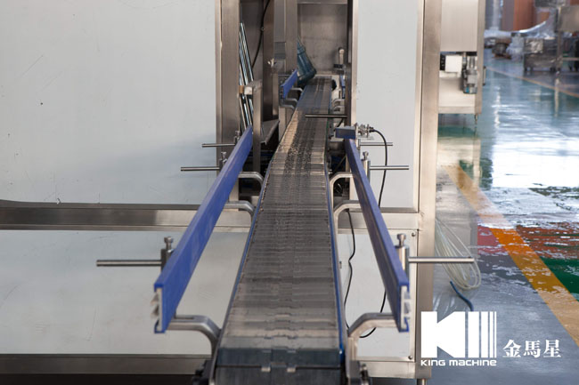 4.該機器生產線上包括了高質量的不銹鋼的清洗噴嘴,壓力灌裝閥,壓蓋機,熱蒸汽收縮套標機。消毒液加熱,熱水沖洗裝置。