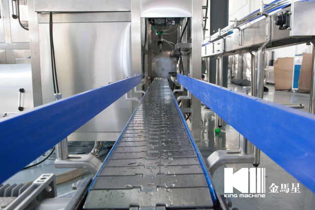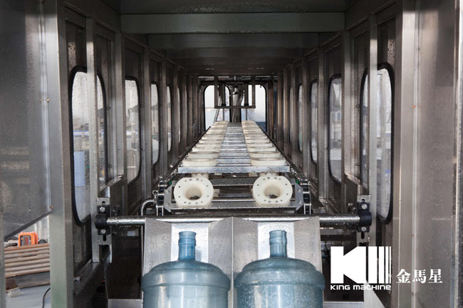 本設備集合了消毒、沖洗、灌裝和壓蓋,合四為一,能夠實現全自動桶裝水旋蓋。沖瓶機使用多種沖品液和消毒液,以保證獲得沖瓶和殺菌效果。消毒液可以循環使用,節省消耗。