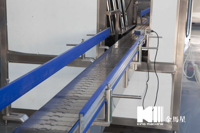 本灌裝生產線專用于3-5加侖桶裝水的灌裝,型號包括了QGF-100,QGF-240,QGF-300,QGF-450,QGF-600,QGF-900,QGF-1200。合消毒、沖洗、灌裝、壓蓋四為一體。沖洗機采用了多種洗液以及消毒液對瓶子進行清洗以及消毒,消毒液能夠循環使用。瓶蓋會在清洗和消毒后運至旋蓋機自動進行旋蓋。本產品功能齊全,涵蓋了清洗、消毒、灌裝、旋蓋、計數等功能,高度自動化,實為飲料生產廠家理想的優選設備。