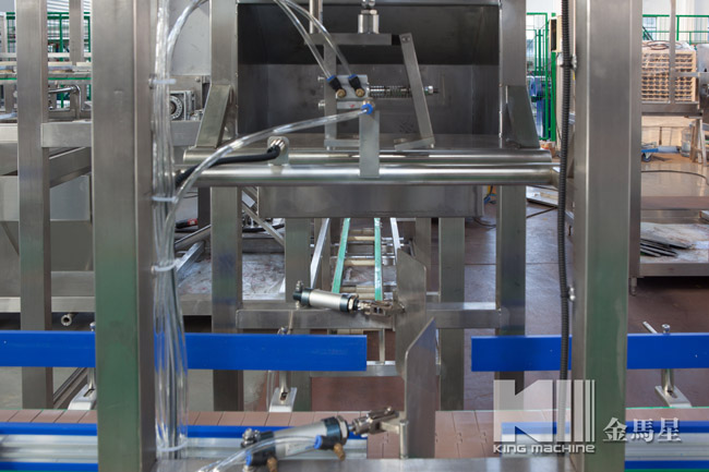 本設備集合了消毒、沖洗、灌裝和壓蓋,合四為一,能夠實現全自動桶裝水旋蓋。沖瓶機使用多種沖品液和消毒液,以保證獲得沖瓶和殺菌效果。消毒液可以循環使用,節省消耗。