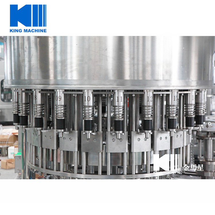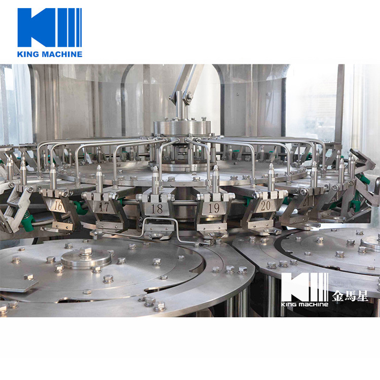 本灌裝生產(chǎn)線專用于3-5加侖桶裝水的灌裝,型號包括了QGF-100,QGF-240,QGF-300,QGF-450,QGF-600,QGF-900,QGF-1200。合消毒、沖洗、灌裝、壓蓋四為一體。沖洗機采用了多種洗液以及消毒液對瓶子進行清洗以及消毒,消毒液能夠循環(huán)使用。瓶蓋會在清洗和消毒后運至旋蓋機自動進行旋蓋。本產(chǎn)品功能齊全,涵蓋了清洗、消毒、灌裝、旋蓋、計數(shù)等功能,高度自動化,實為飲料生產(chǎn)廠家理想的優(yōu)選設(shè)備。