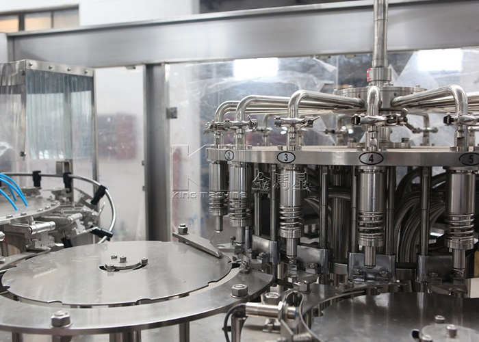 飲用水灌裝機集沖洗、灌裝、旋蓋于一體,全過程自動化運行,主要適用礦泉水、純凈水等不含氣飲料的沖瓶、灌裝、封口連續作業。本機大部分電器系統零件均采用國外優良產品,所有與液料接觸的地方均采用優質的不銹鋼材料制作,主關鍵部件采用數控機床精密加工, 整機光電檢測各部件的運行狀況,無瓶不灌裝,無瓶不送蓋,自動化程度高,操作簡易,具有耐磨、穩定、故障率低等特點,產品質量處于行業前列,是新老飲料投資者的選擇。