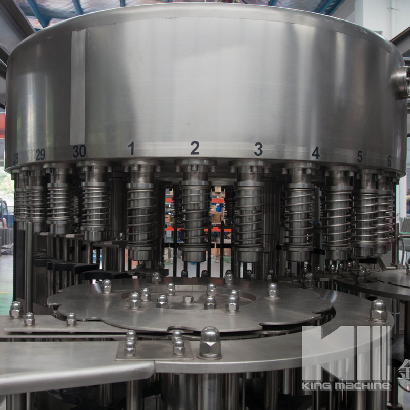 飲用水灌裝機集沖洗、灌裝、旋蓋于一體,全過程自動化運行,主要適用礦泉水、純凈水等不含氣飲料的沖瓶、灌裝、封口連續作業。本機大部分電器系統零件均采用國外優良產品,所有與液料接觸的地方均采用優質的不銹鋼材料制作,主關鍵部件采用數控機床精密加工, 整機光電檢測各部件的運行狀況,無瓶不灌裝,無瓶不送蓋,自動化程度高,操作簡易,具有耐磨、穩定、故障率低等特點,產品質量處于行業前列,是新老飲料投資者的選擇。